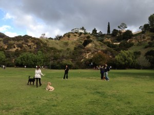 Then we found something more bucolic. The Lake Hollywood dog park, right below the Hollywood sign. Dog Brigadoon.